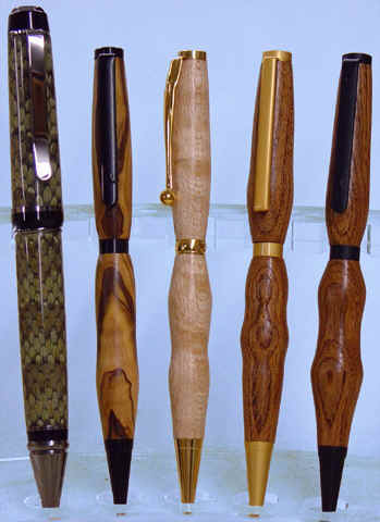 Jeff's website for his woodworking hobby is http://www.texaswoodshop.com where you can view a section on the various stages of turning a pen and see a video clip of Jeff turning a pen on his velocipede lathe. Jeff's email address is jcarrell@texaswoodshop.com. Jeff's demonstration will be on pen turning: from beginning to end, covering traditional and new materials, and also a few different finish types. |